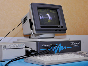 Es un estudio que permite por medio de ondas sonoras de alta frecuencia evaluar las estructuras de los diferentes tejidos. A través de un transductor (cristales piezoeléctricos) se envía una señal eléctrica que emite un haz de ultrasonido que al interceptar las estructuras del ojo se reflejan (ecos) y retornan al transductor que contiene un receptor.