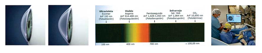 Con energía elevada puede utilizarse en el cristalino y con energía baja utilizarse en la córnea.
