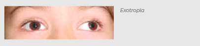 Esta ocurre cuando un ojo se tuerce hacia afuera. Suele ser intermitente (desvía a veces si a veces no) particularmente cuando el niño tiene sueño, esta enfermo, cansado, mira la luz brillante o a distancia. Lentes, parches, ejercicios ortópticos mejora el estrabismo. Generalmente se necesita cirugía pero a diferencia del estrabismo hacia adentro (esotropia) la exotropia se opera cuando el niño es mas grande.