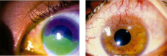 Ulceras de córnea teñida con fluoresceína Vascularización del limbo corneano producida por el uso prolongado